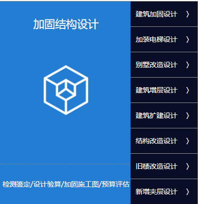 建筑加固設計、加裝電梯設計、別墅改造設計、建筑曾層設計、建筑擴建設計、結構改造設計、舊樓改造設計、新增加層設計